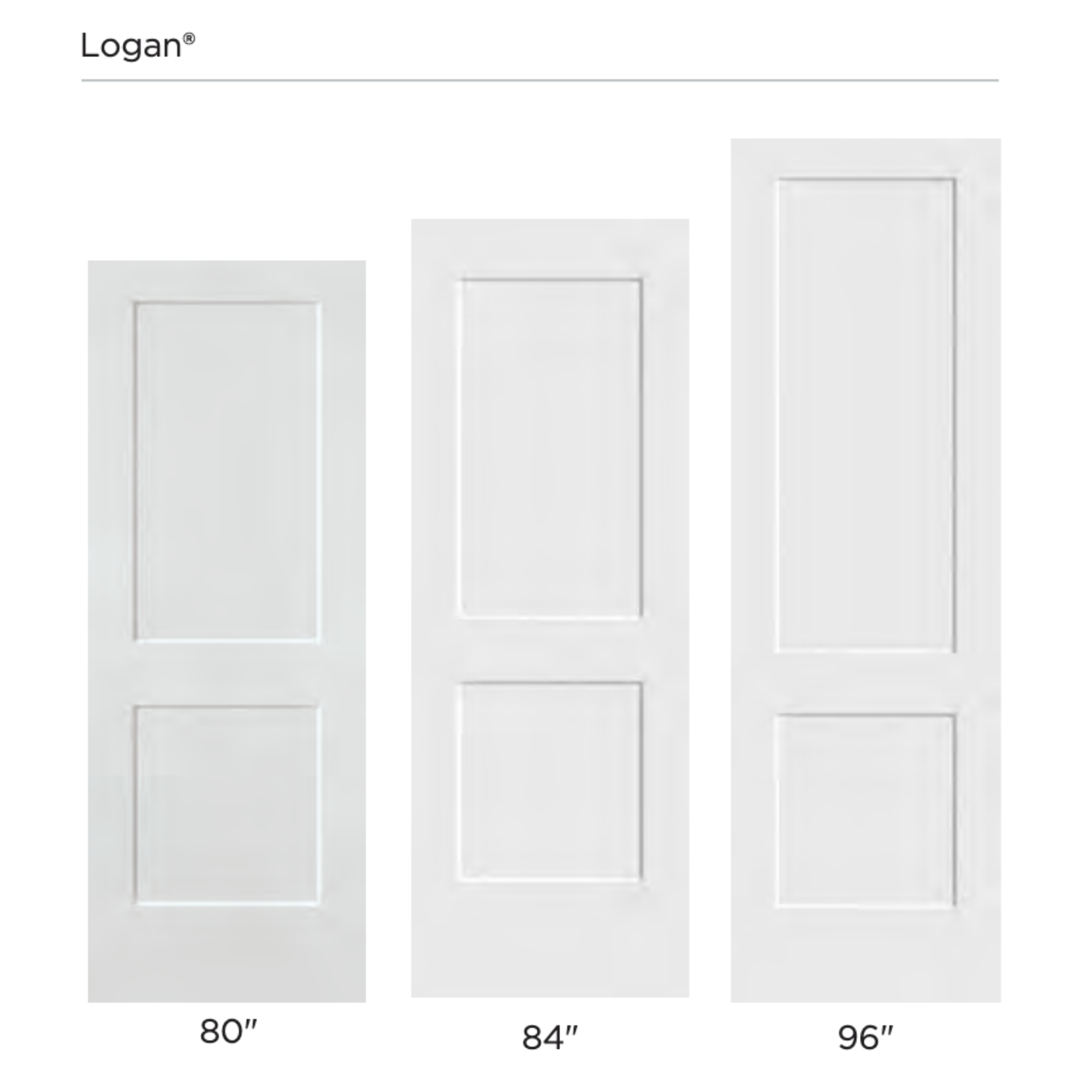 The Logan collection is available in a wide range of widths from narrow 12 inch openings to full 36 inch passage doors. Three height options are also available. You can choose Safe ’N Sound®, Solid Core or Emerald™ Series construction to achieve the level of sound control, durability and premium feel that suits your project. A 20 minute fire rated option is offered in the 1 and 3/4 inch thickness for areas where added safety is required.